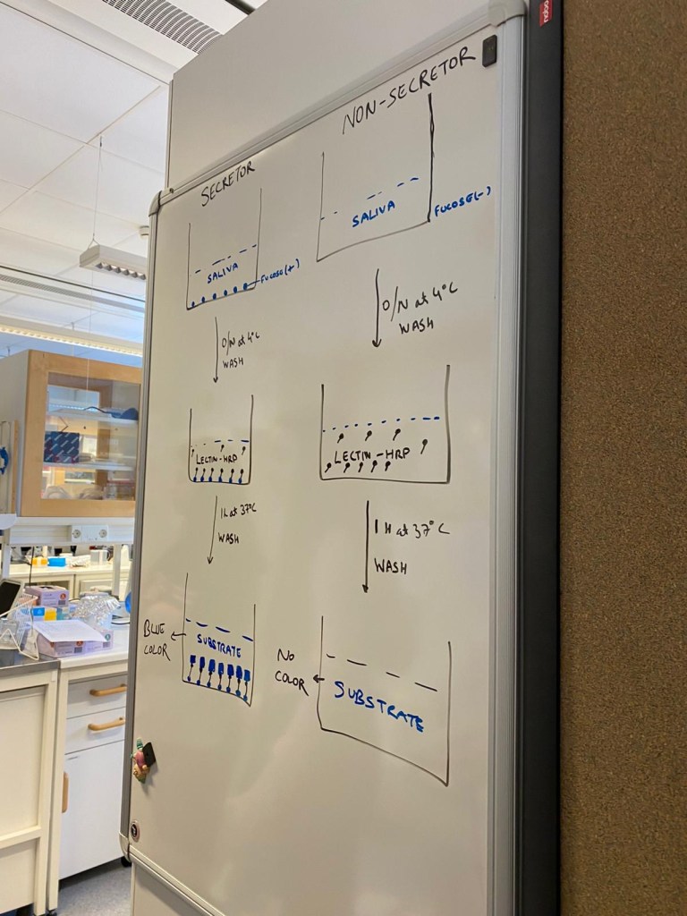 The second department that we met with was the Department of Molecular Virology. At this visit, we learned all about norovirus, also known as “Winter Vomiting Disease.” This is a very common sickness in Sweden during the wintertime. In fact, 80% of people are susceptible to norovirus. We all gave saliva samples, and had the opportunity find out who, among our group, would be likely to get infected with the virus upon exposure. Unfortunately, only 1 out of the 9 of us was a non-secretor of the molecule that increases the risk of getting sick with the virus.